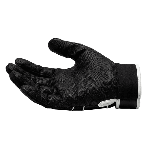 High-performance smooth Sheep batting leather in Black provides optimal palm protection without sacrificing flexibility. Sleek appearance meets competitive functionality. Perfect for serious athletes requiring reliable grip and comfort.